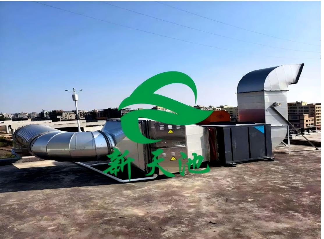 設(shè)計方案:新天池環(huán)保針對此項目設(shè)計了等離子設(shè)備的廢氣處理方案,在CNC設(shè)備頂部開孔,廢氣通過管道收集后到樓面經(jīng)過等離子設(shè)備處理