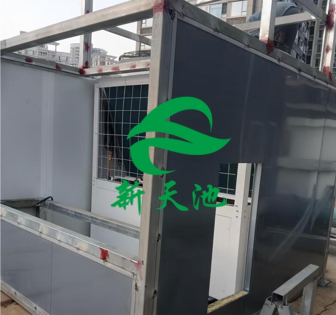 此范圍內(nèi)空調(diào)主機(jī)設(shè)備開啟時(shí),對(duì)住宅有影響,住宅處離空調(diào)主機(jī)距離在50米左右,為避免空調(diào)主機(jī)設(shè)備運(yùn)行時(shí)產(chǎn)生的噪聲對(duì)敏感點(diǎn)造成噪聲影響,新天池環(huán)保受業(yè)主之邀。進(jìn)行降噪治理。